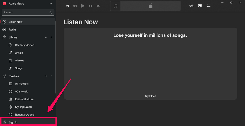 Şimdi, Windows 11 PC'nizde veya dizüstü bilgisayarınızda Apple Music uygulamasını başlattığınızda yapmanız gereken ilk şeylerden biri Apple Kimliğinize giriş yapmaktır. Bunu yapmak için aşağıdaki adımları izleyebilirsiniz: