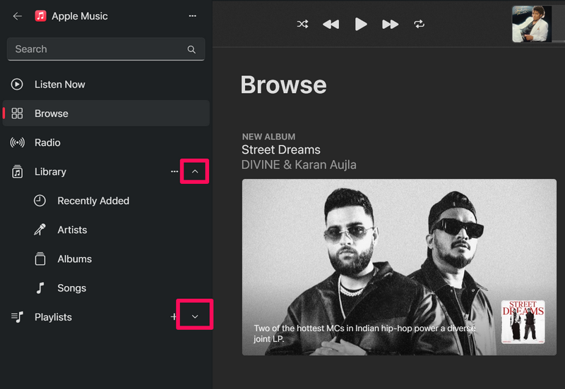 2.YapabilirsinizKüçük ok düğmelerini tıklayınyanındaKütüphaneVeÇalma listeleribölümleronları genişlet.