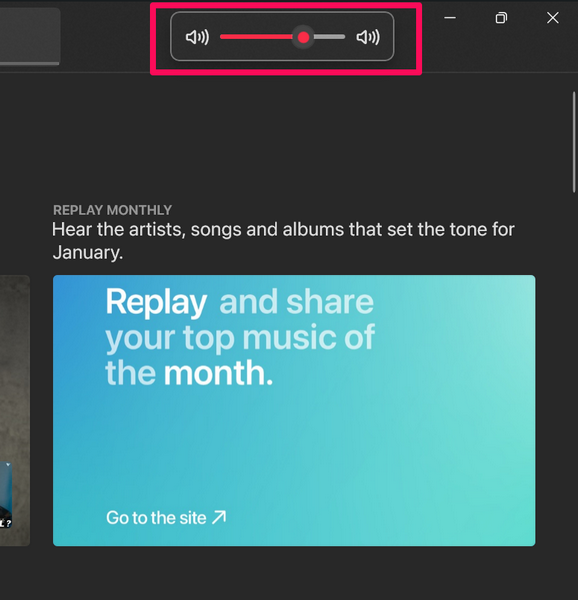 5.Ayrıca, yukarıdaki menü çubuğunun sağ tarafında,Ses düğmesibu genişleyenHacim kaydırıcısı.