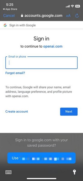 Not:Web istemcisinde zaten bir chatgpt hesabınız varsa, geçmiş senkronizasyonunu etkinleştirmek için iOS'ta ChatGPT uygulamasına giriş yapmak için aynısını kullanabilirsiniz.