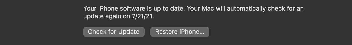 - Finder veya iTunes'daki “Güncelleme Kontrol Et” düğmesine tıklayın.