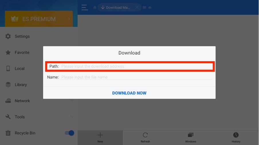 Spectrum TV uygulamasını indirmek için ES File Explorer'ı kullanmak için Amazon App Store'a gidin ve ES Dosya Gezgini'ni indirin. Ardından, ES Dosyası Gezgini:-