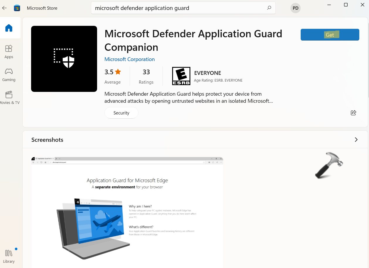 - AçıkMicrosoft Mağazasıve arayınMicrosoft Defender Uygulama Muhafızları.
