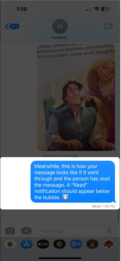 4. Teslim edilen veya okunan son gönderilen iMessage'ınızın altında görünmüyor
