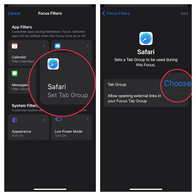 3.Ardından, birOdak profiliBelirli bir Safari sekme grubuna bağlantı vermek istersiniz.