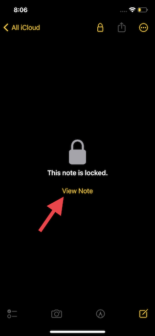 Sadece açNotlar UygulamaCihazınızda -> Kilitli notunuza gidin ve üzerine dokunun. Şimdi dokununNotu GörüntüleVe sonra yüz kimliğinizi veya dokunmatik kimliğinizi kullanarak kimlik doğrulaması yapın.