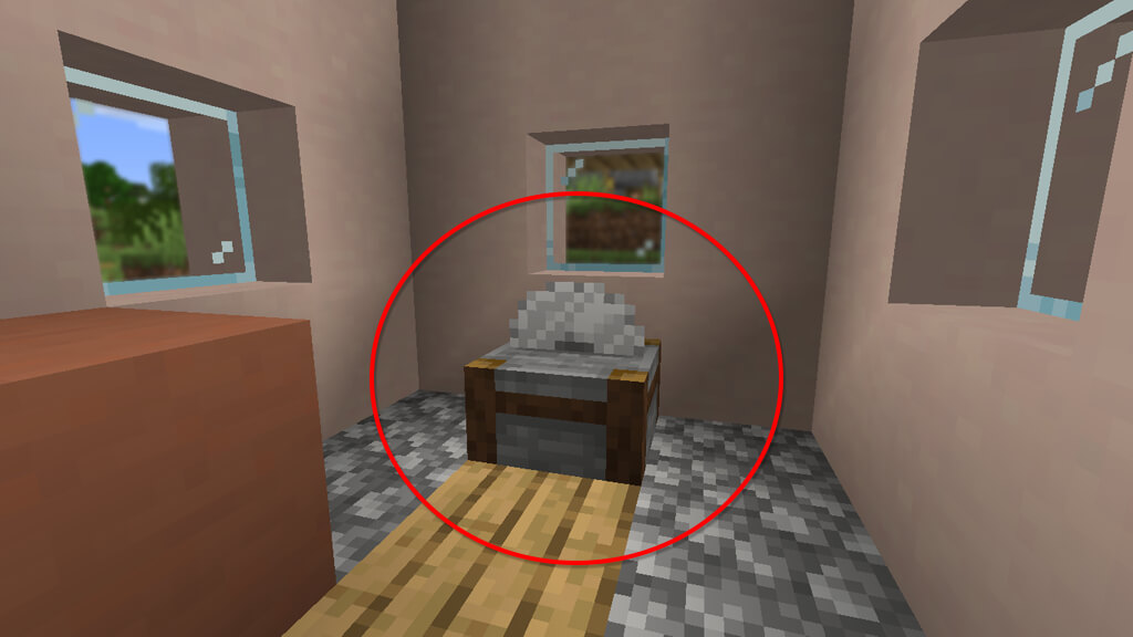 - AçıkJava Edition-Bir demir içi içi ve üç blok taş.