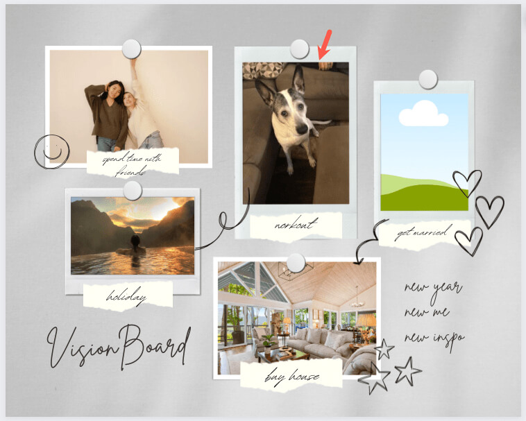 Hedef belirleme, görsel motivasyon veya yeni bir yıl için onaylamalar için kendi vizyon panonuzu yapmak harika ve yaratıcı bir çıkış noktasıdır. Sizinkini bir araya getirmenin tadını çıkarın.