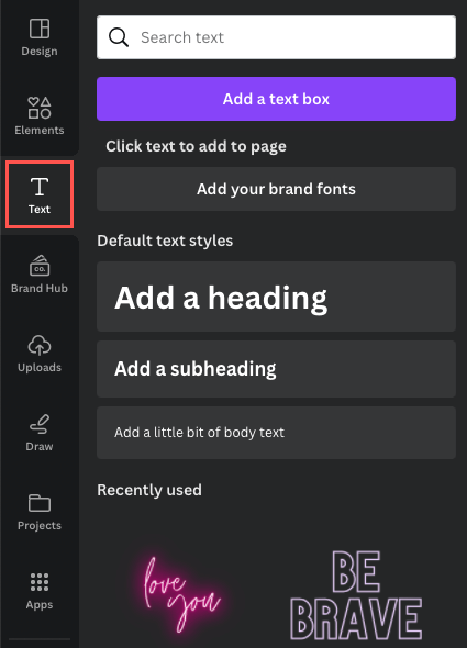 Daha fazla metin eklemek için seçinMetinkenar çubuğunda. Daha sonra bir stil, yazı tipi kombinasyonu seçebilir veya boş bir kutu ekleyebilir ve metninizi girebilirsiniz.