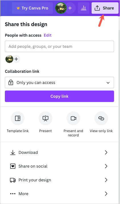 Canva Vizyon Kurulu'nu kaydedin veya paylaşın