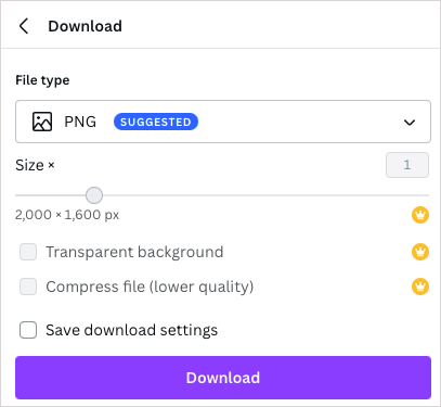 Vizyon kartını cihazınızda bir resim olarak kaydetmek için seçinİndirmek. Sonra seçDosya Türü, ayarlayınBoyutve isteğe bağlı olarak ek ayarları işaretleyin.