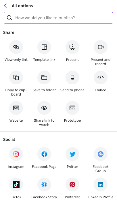 Tahtayı sosyal medyada paylaşmak için seçinSosyalde Paylaş. Ardından Instagram, Facebook, Tiktok veya Pinterest gibi hizmeti seçin.