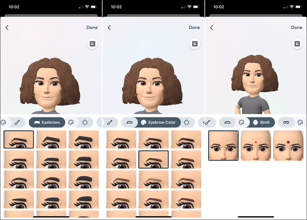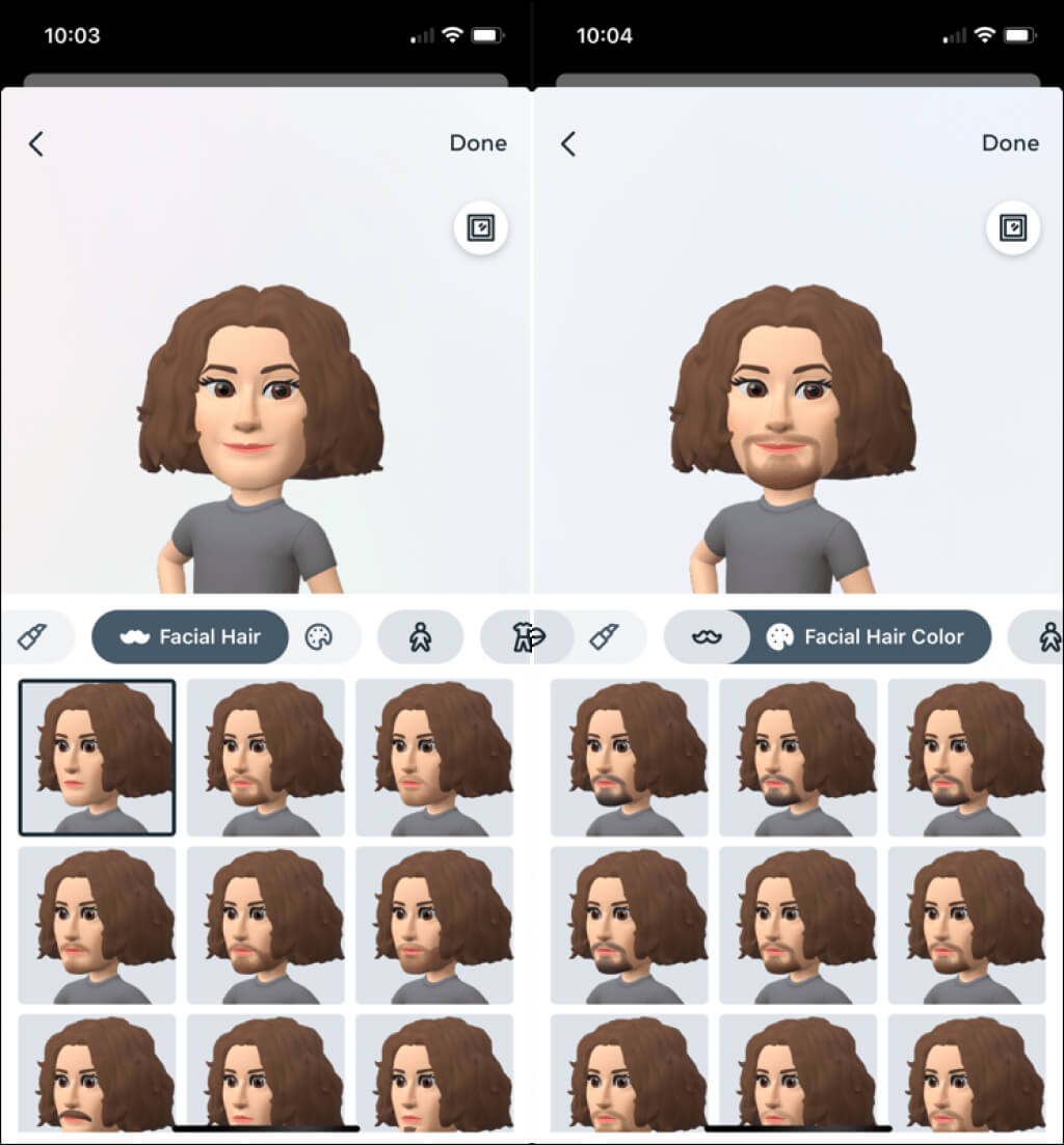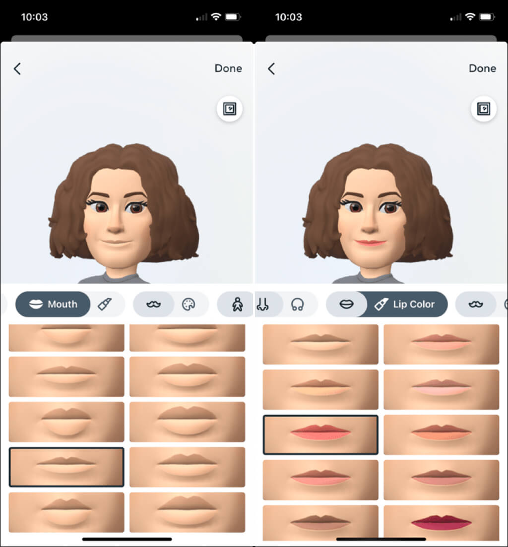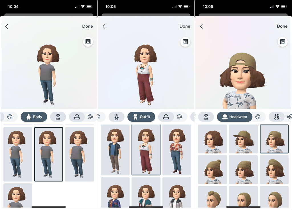Avatarınızın bir önizlemesini ekranın üst kısmındaki yol boyunca görebilirsiniz. Sağ üstte, aşağıda bitti,aynasimge. Cihazınızın ön kamerasını kullanarak önizlemenin yanında kendinizin bir resmini görüntülemek için bunu seçin. Bu, mevcut görünümünüzü eşleştirmenin eğlenceli bir yoludur.