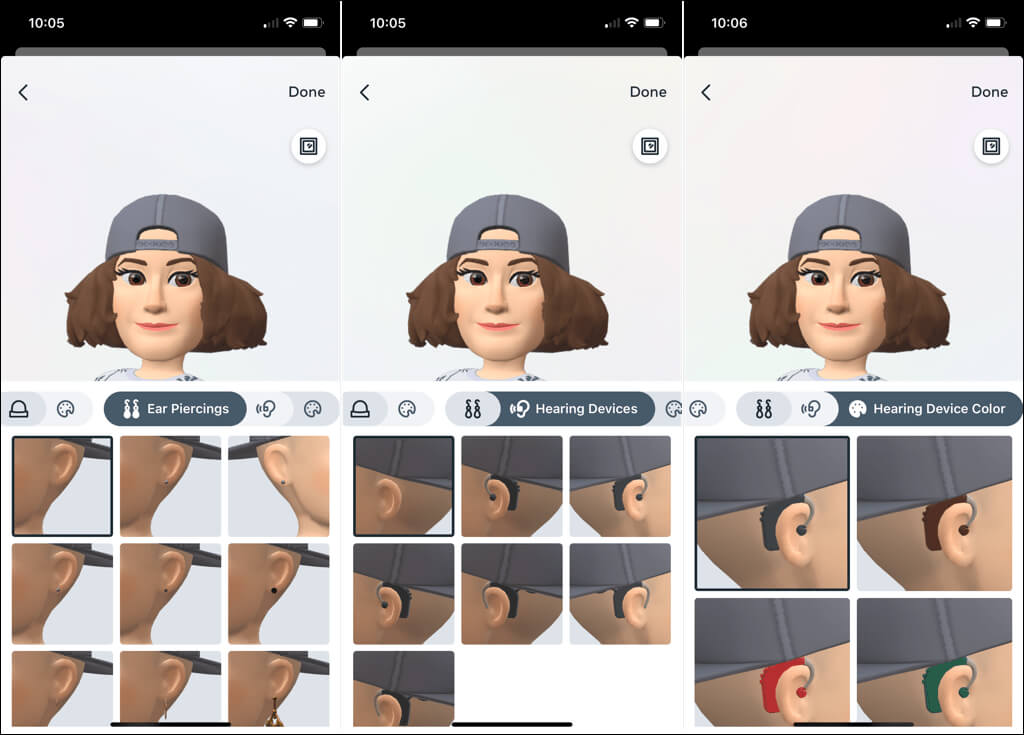 Kulak delindiyseniz, bir çift seçinKulak piercingSonraki. Bir işitme cihazı olanlar için,İşitme CihazlarıVeİşitme cihazı rengibölümler.