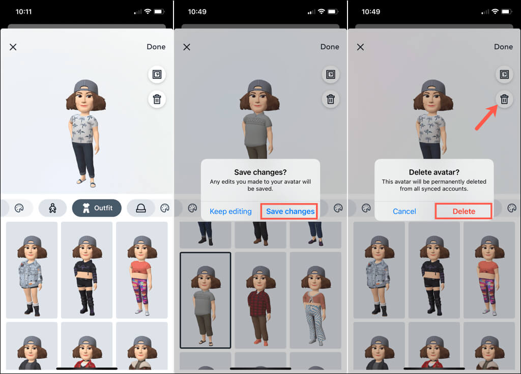Avatarı tamamen kaldırmayı tercih ederseniz,çöp tenekesiÖnizleme bölümünde ve ardından seçerek avatarınızdan kurtulmak istediğinizi onaylayınSilmek.