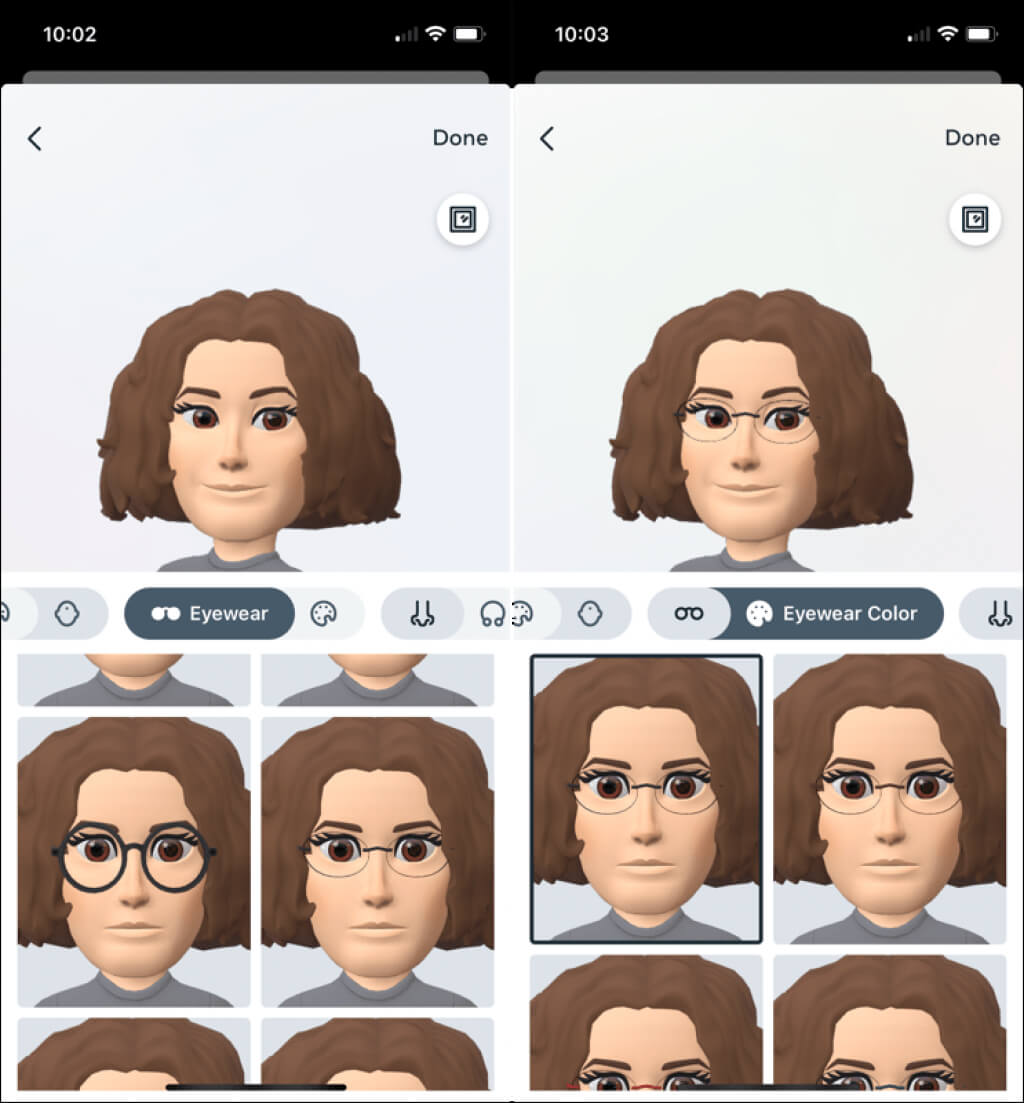 Gözlük takarsanız, serin bir çift seçebilirsiniz.GözlükAvatarınız için. Mevcut görünümünüzü eşleştirin veya yeni bir şey deneyin. Sonra seçebilirsinizGözlük rengi.