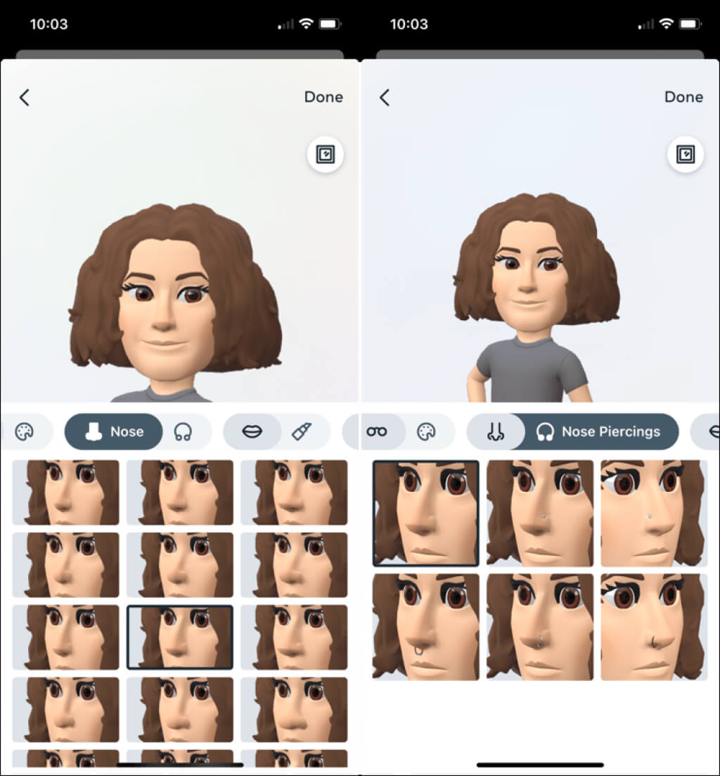 Burnunuzun şekli ne olursa olsun, bir sonraki seçenekle bulacaksınız.Burun. Bir burun piercinginiz varsa, bunu bir sonraki yazı ve çember seçenekleriyle eklediğinizden emin olun.Burun piercingleribölüm.