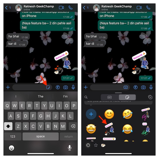 İOS cihazınızda başlatınWhatsapp-> Bir sohbete gidin ve ardından metin alanındaki etiket tepsisi simgesine basın.