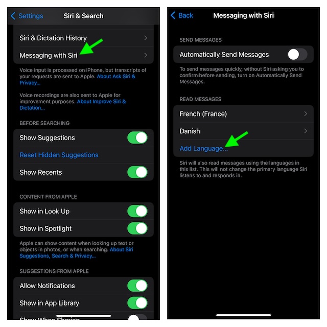 Siri'nin zaten mesaj gönderme becerisine sahip olduğunu belirtmek önemlidir. Ancak, seçtiğiniz dillerdeki mesajları okuma yeteneğinden yoksundu. İster iki dilli olun, ister yabancı bir dil öğrenmeye çalışın, ister yabancı bir dil konuşan bir kişiyle sohbet etmenize yardımcı olabilecek akıllı bir asistan olmasını isteyin, bu yeni eklenti zevkinize hitap edecektir.