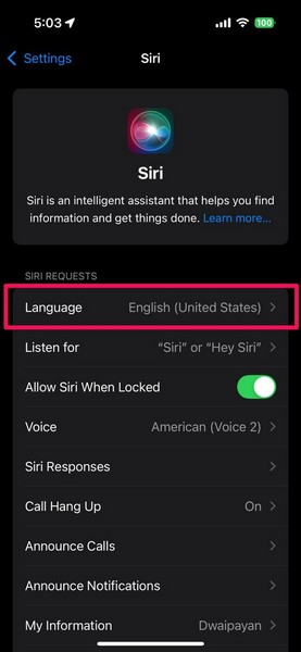 Sonuç olarak,Siri ile İngilizce konuşursanız, cevap verecektir., iOS 18'de iPhone'unuzda İngilizce ve Hintçe olarak ayarlanmasına rağmen, Siri ile konuşurken bunu aklınızda bulundurun ve Siri'nin iOS 18 cihazınızda Hintçe konuşmasını sağlamak için birincil duruma uyun.