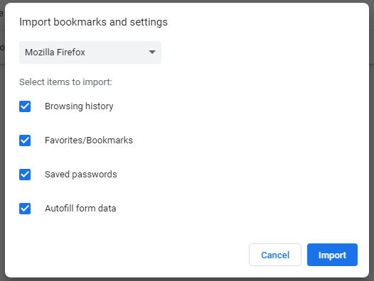 Microsoft Edge, Microsoft Internet Explorer, Safari veya Mozilla Firefox dahil olmak üzere çoğu tarayıcıdan Chrome'a yer imleri ve ayarları aktarabilirsiniz.