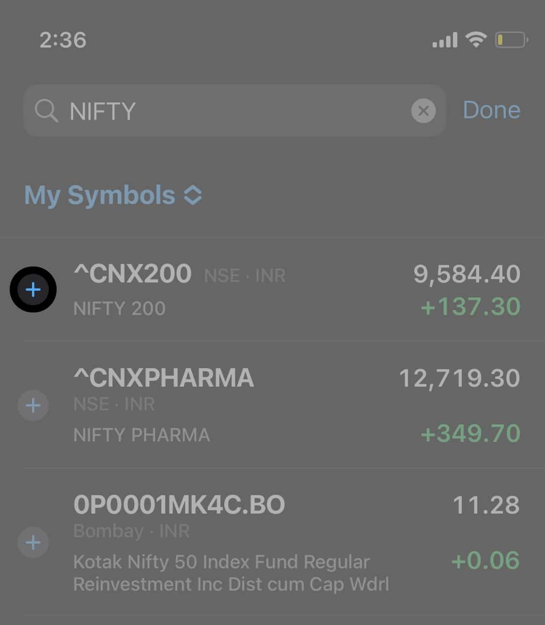 Ayrıca bir izleme listesinde diğerine bir sembol ekleyebilirsiniz. Bunu yapmak için, eklemek istediğiniz sembolü bulun ve üzerine kaydırın. Üç Yatay Çizgi simgesine dokunun ve sembolü eklemek istediğiniz izleme listesini seçin. Bundan sonra bitti.