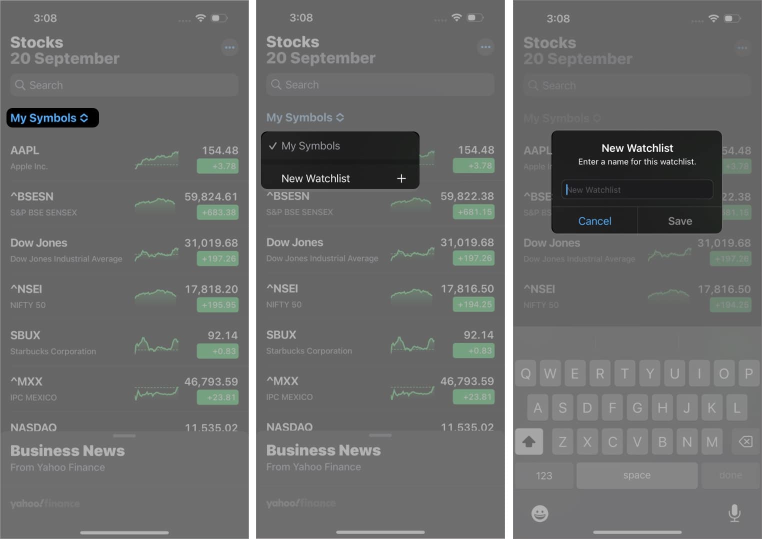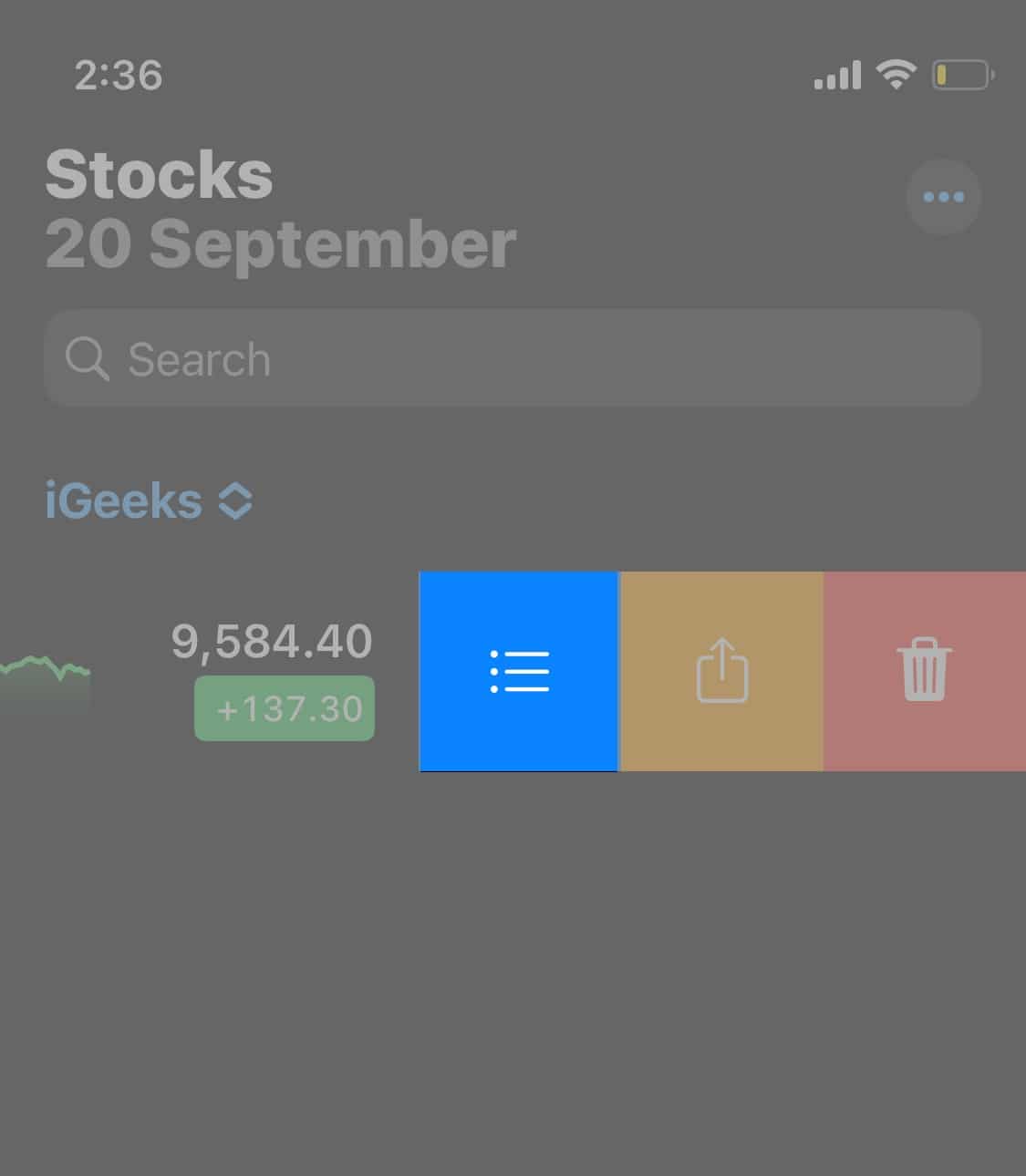 IOS Stocks uygulamasında Watchlists - Oluştur, Yeniden Adlandır, Yeniden Sıntır veya Sil
