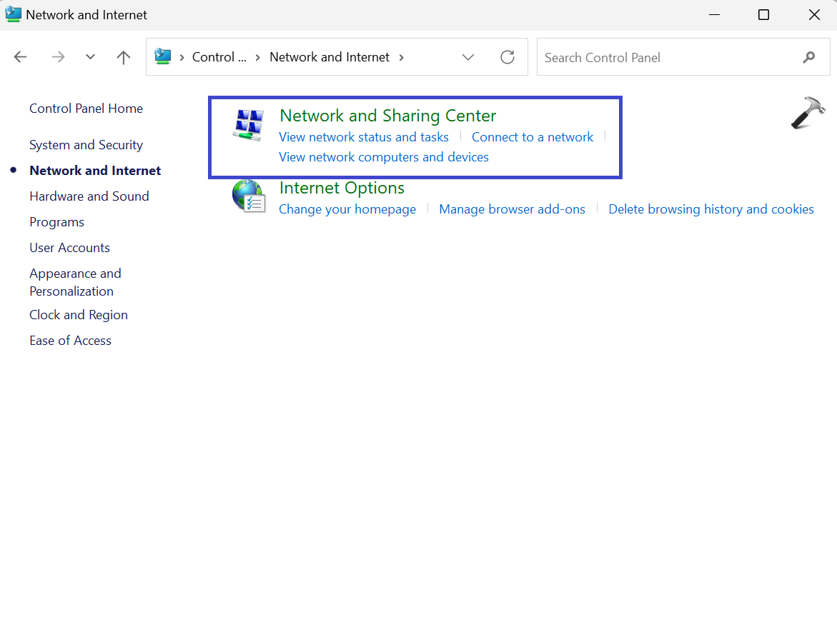 1. Kontrol panelini açın ve “Ağ ve İnternet” seçeneğini tıklayın.