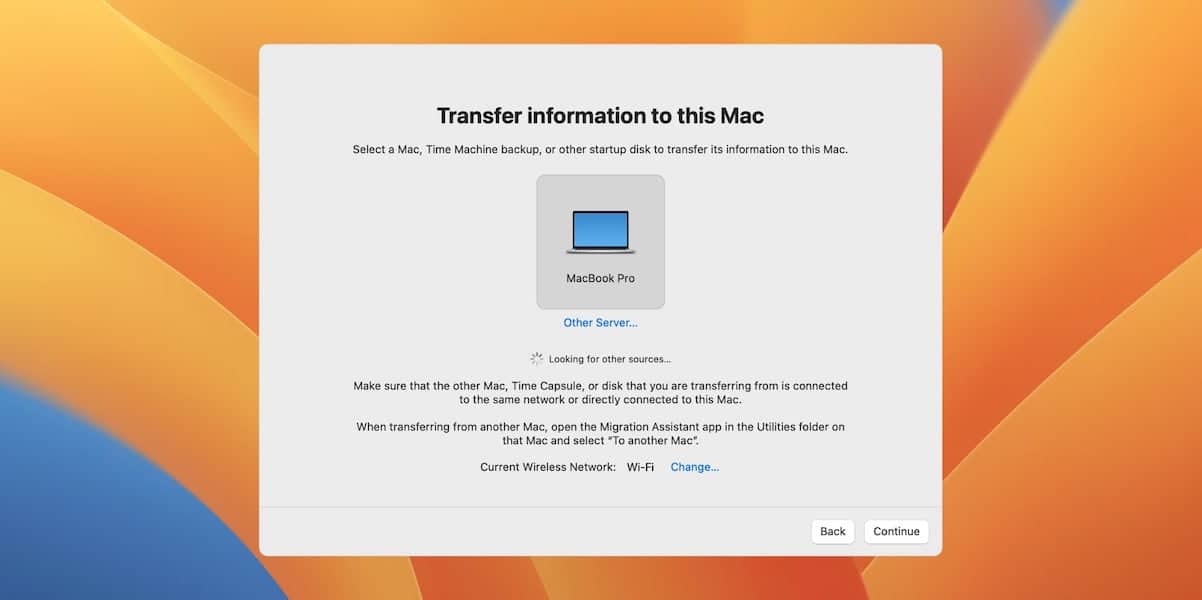 - Her iki bilgisayarda da “Bilgilerinizi nasıl aktarmak istersiniz” için üç seçenek listesinden “Başka Bir Mac” seçeneğini seçin ve “Devam” ı tıklayın.