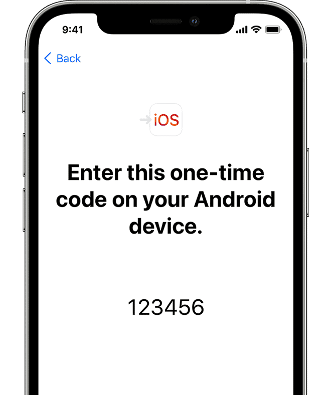 - İPhone'unuzda birAndroid'den Taşınekran. Göründüğünde, dokununDevam etmekVe on haneli veya altı haneli bir kodun görünmesini bekleyin.