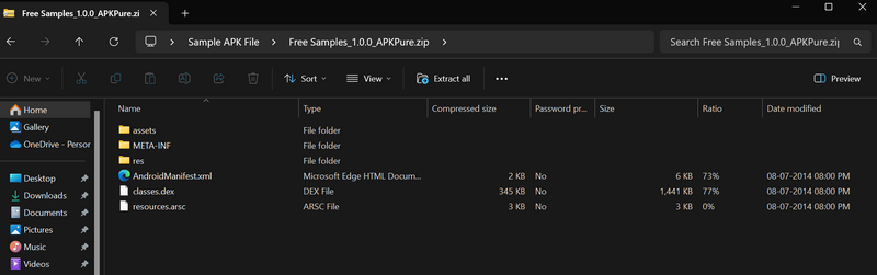 APK dosyalarını yalnızca Windows 11 PC'nizdeki veya dizüstü bilgisayarınızda açabilir ve sıkıştırılmış formda olan tek tek dosyalara göz atabilirsiniz. Bir Windows 11 PC veya dizüstü bilgisayarla çalışan bir Android uygulama geliştiricisi iseniz bu yararlı olabilir.