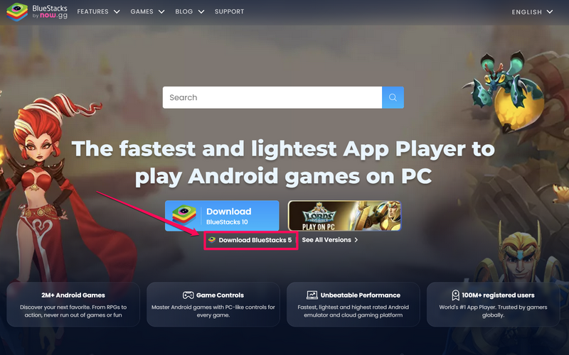 2.TıklayınBluestacks 5 düğmesini indirin.