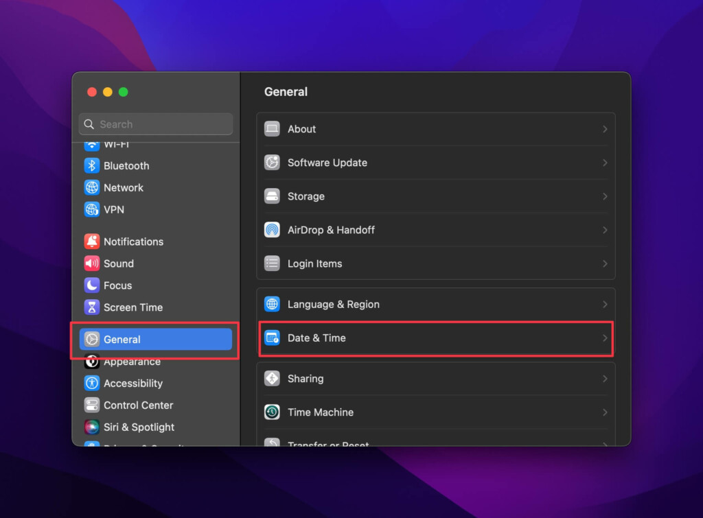 2.SeçmeZaman ve Dilkenar çubuğundan ve ardından tıklayınTarih ve Saat.
