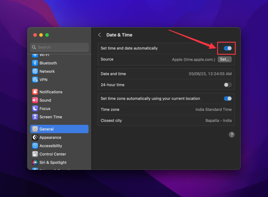 4.Birkaç saniye bekleyin ve açınZamanı otomatik olarak ayarlayınseçenek.