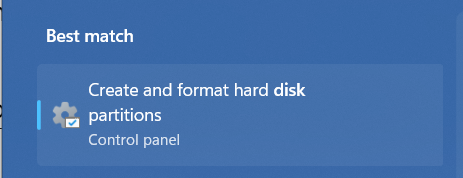 1.VurmakWindows Anahtaraçmak içinWindows Arama Kutusuve tipDisk yönetimi aletiçinde.