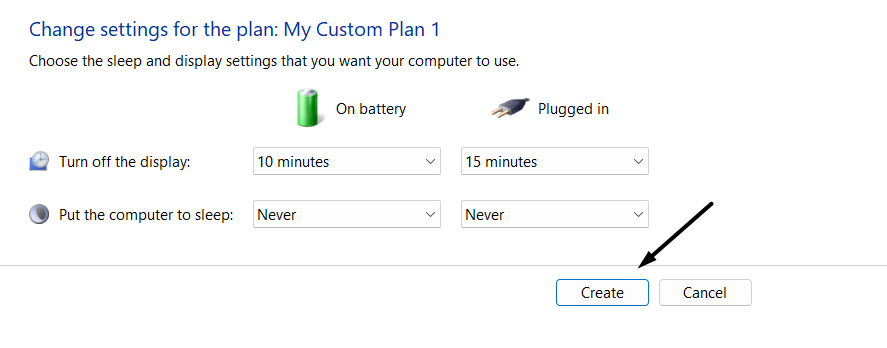 4.TıklayınSonrakidüğme Ve sonra tıklayınYaratmakYeni bir güç planı oluşturmak ve değişiklikleri kaydetmek için.