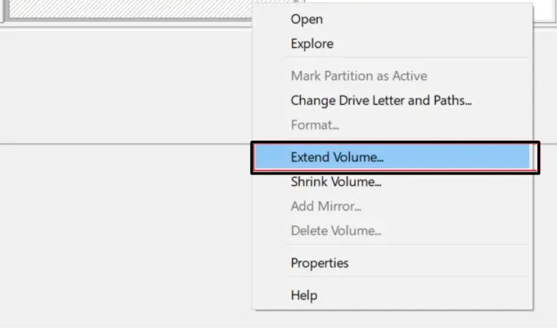 4.Bağlam menüsünden,Hacmi Uzatın…seçenek ve üzerine tıklayınSonrakiseçenek.