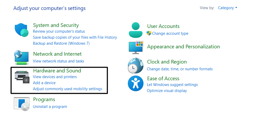 1.AçKontrol Paneli Yardımcı ProgramıWindows sisteminizde ve üzerine tıklayınDonanım ve Ses.