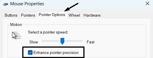 4.Taşınİşaretçi seçenekleriSekme ve işaretini kaldırınİşaretçi hassasiyetini geliştirinonay kutusu.
