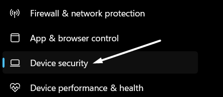 1.AçWindows Güvenlik UygulamasıPC'nizde ve seçinCihaz güvenliğiSol menüden.