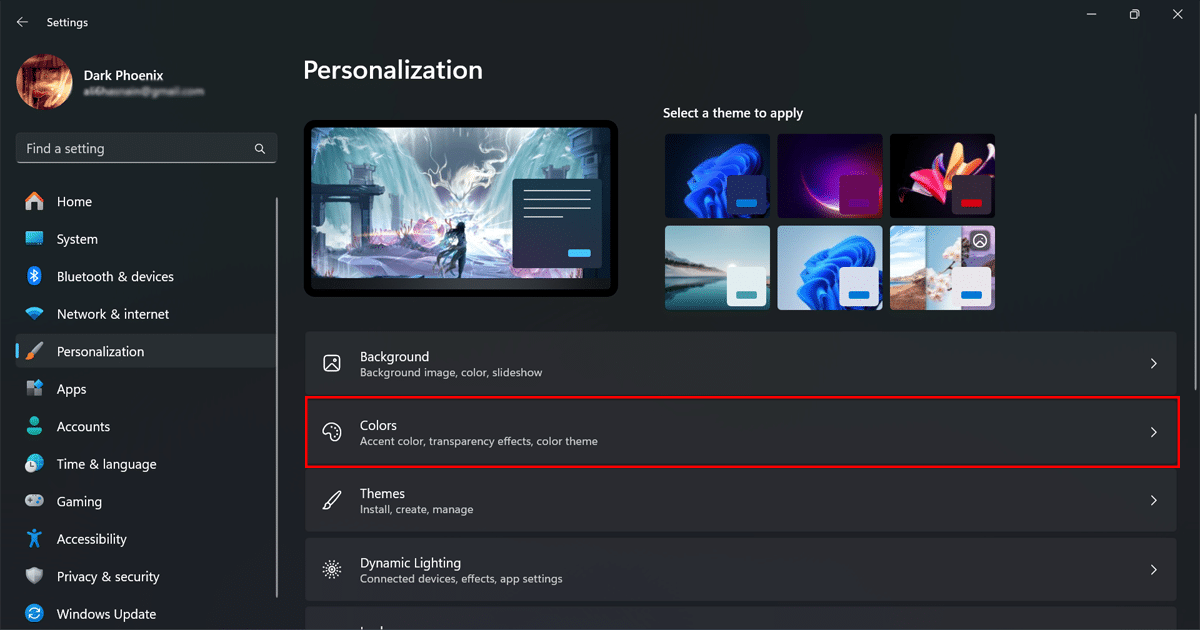 - TıklayınKişiselleştirmeve tıklayınRenk.
