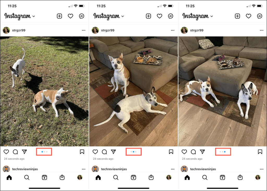 Diğerleri gönderinizi Instagram yayınlarında görüntülediğinde, dahil edilen resim sayısı için ilk fotoğrafın altındaki noktalar göreceklerdir. Daha sonra hepsini görmek için kaydırabilirler.