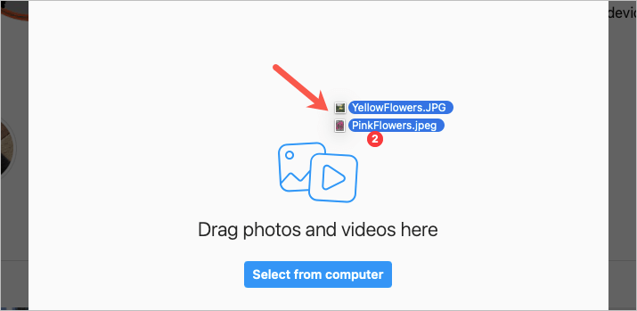 Ne zamanYeni Gönderi OluşturPencere açılır, fotoğraflarınızı pencereye sürükleme veya bilgisayarınızdan birden fazla fotoğraf yükleme seçeneğiniz vardır.