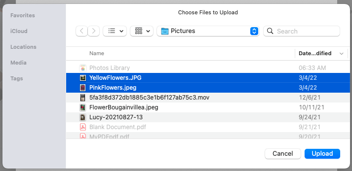 - Gözat iletişim kutusu göründüğünde, ek fotoğrafları bulun ve seçinYüklemek.