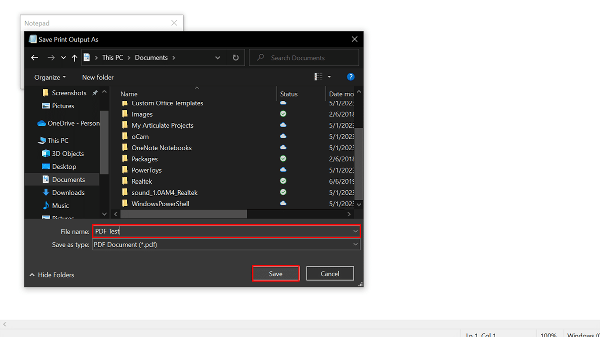 - PDF dosyasını kaydetmek için klasör hedefini seçin> Dosya için bir ad onaylayın.
