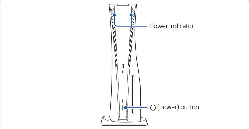 - Gövdenin güç göstergesi kapanana kadar bekleyin. Sonra, PS5'leri aşağı itinGüçdüğme. İlk bip sesi sonra, ikinci bir bip sesi duyana kadar yedi saniye tutun.