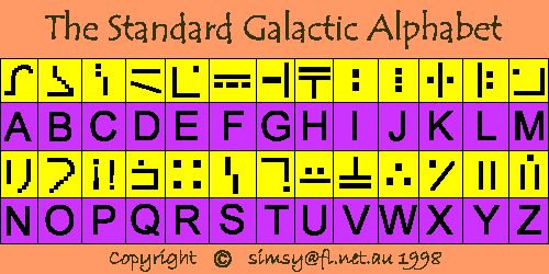 Tom Hall tarafından Keen 1'de tasarlanan senaryo, uzaylı görünümlü bir “çıkış” işareti oluşturmak için standart alfabenin değiştirilmiş sürümleri olarak ortaya çıktı. Daha benzer işaretler yaratmaya devam etti, sonuçta her İngiliz mektubunun yeni bir versiyonu ile sonuçlandı ve standart galaktik alfabeyi yarattı.