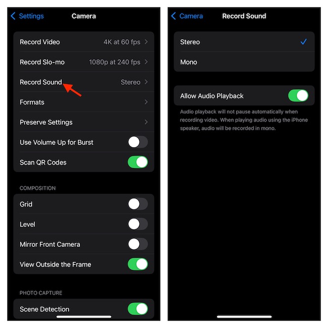 Kamera ayarı içinde gizlenmiş, iPhone'unuzda bir video kaydettiğinizde bile sesi çalmaya devam etme seçeneği var. Bu kamera özelliğini oyuna getirmek için tek yapmanız gereken sadece etkinleştirmek.