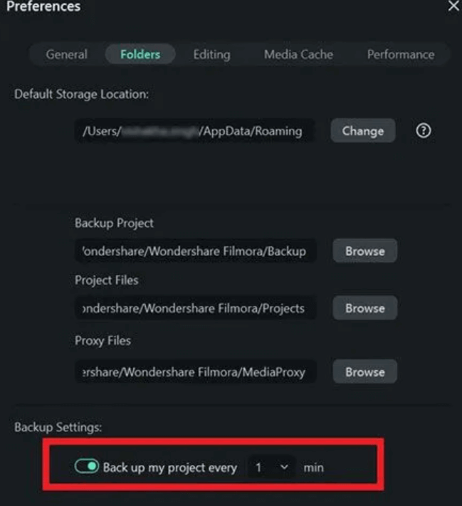 Yöntem 1: Filmora'nın yedekleme klasörünü kontrol edin
