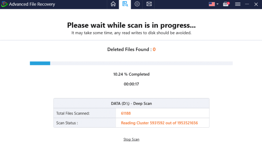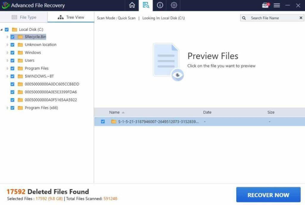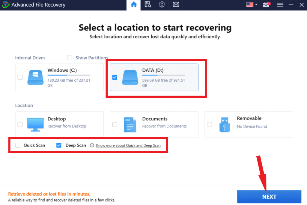 Kayıp dosyalar için kapsamlı arama için derin tarama seçmenizi öneririz.